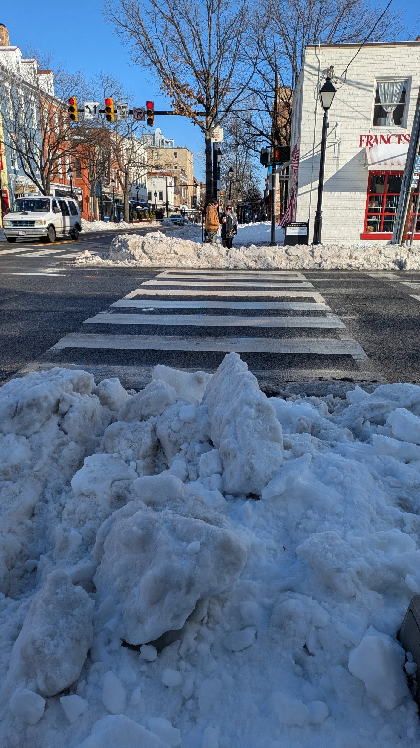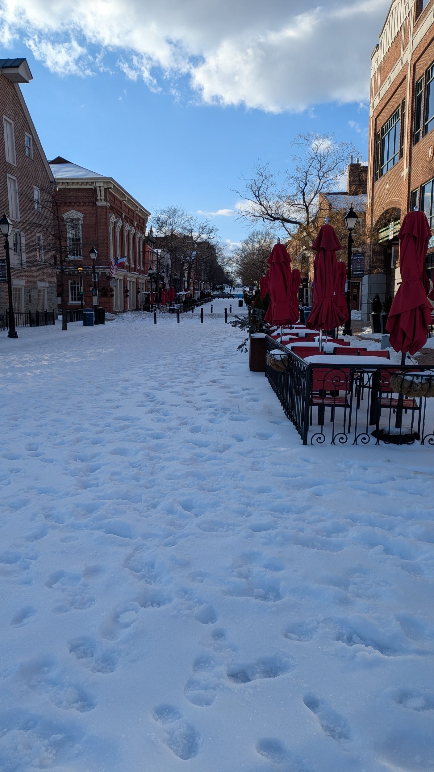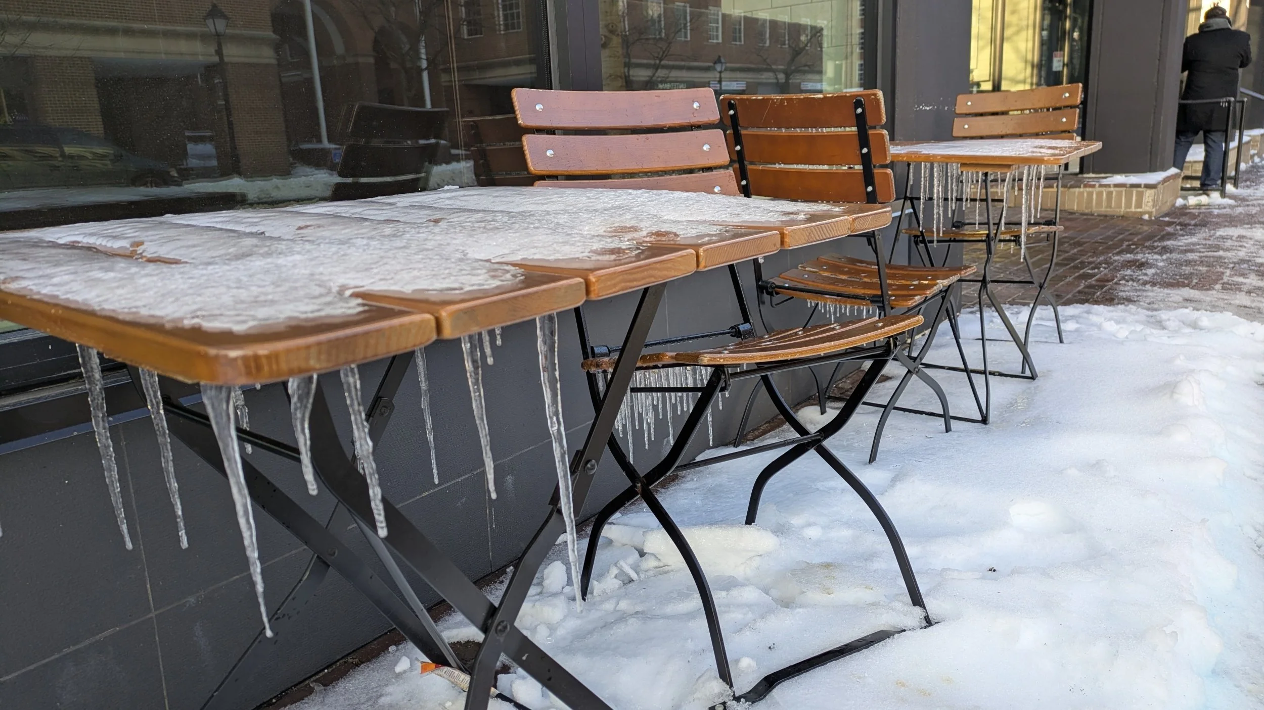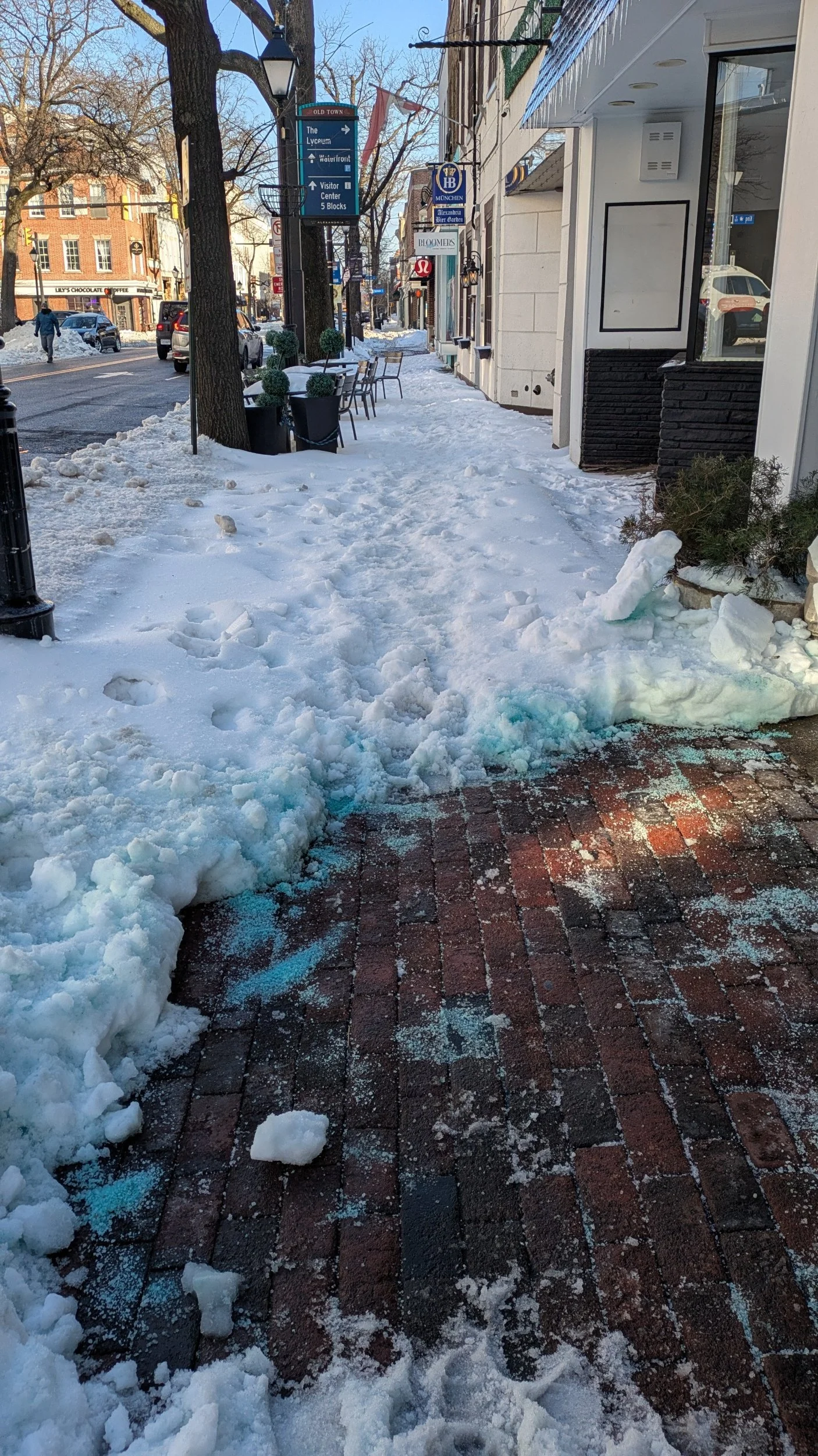 The roads are clear, but not the footpaths, except where owners have salted or shovelled the snow and ice.